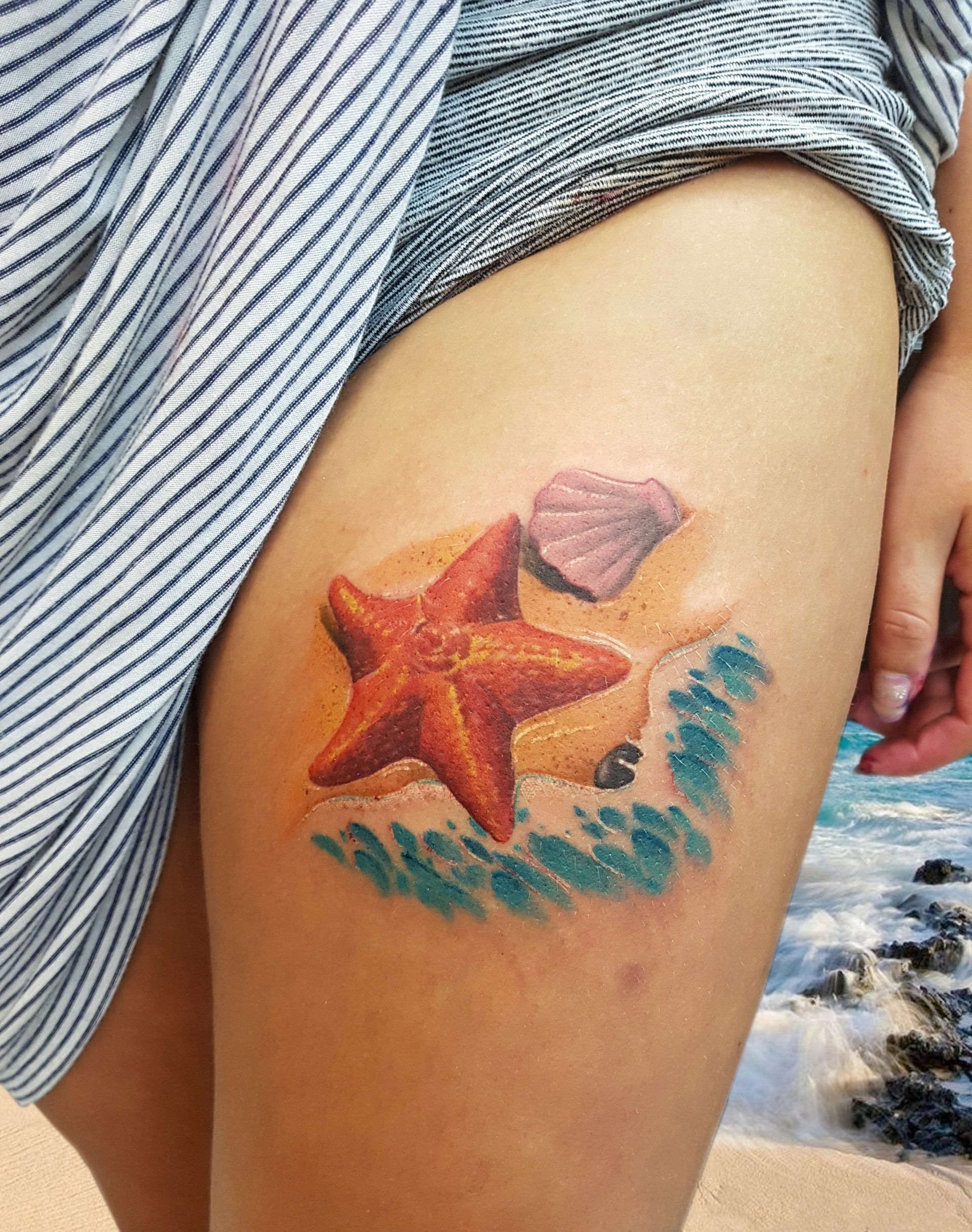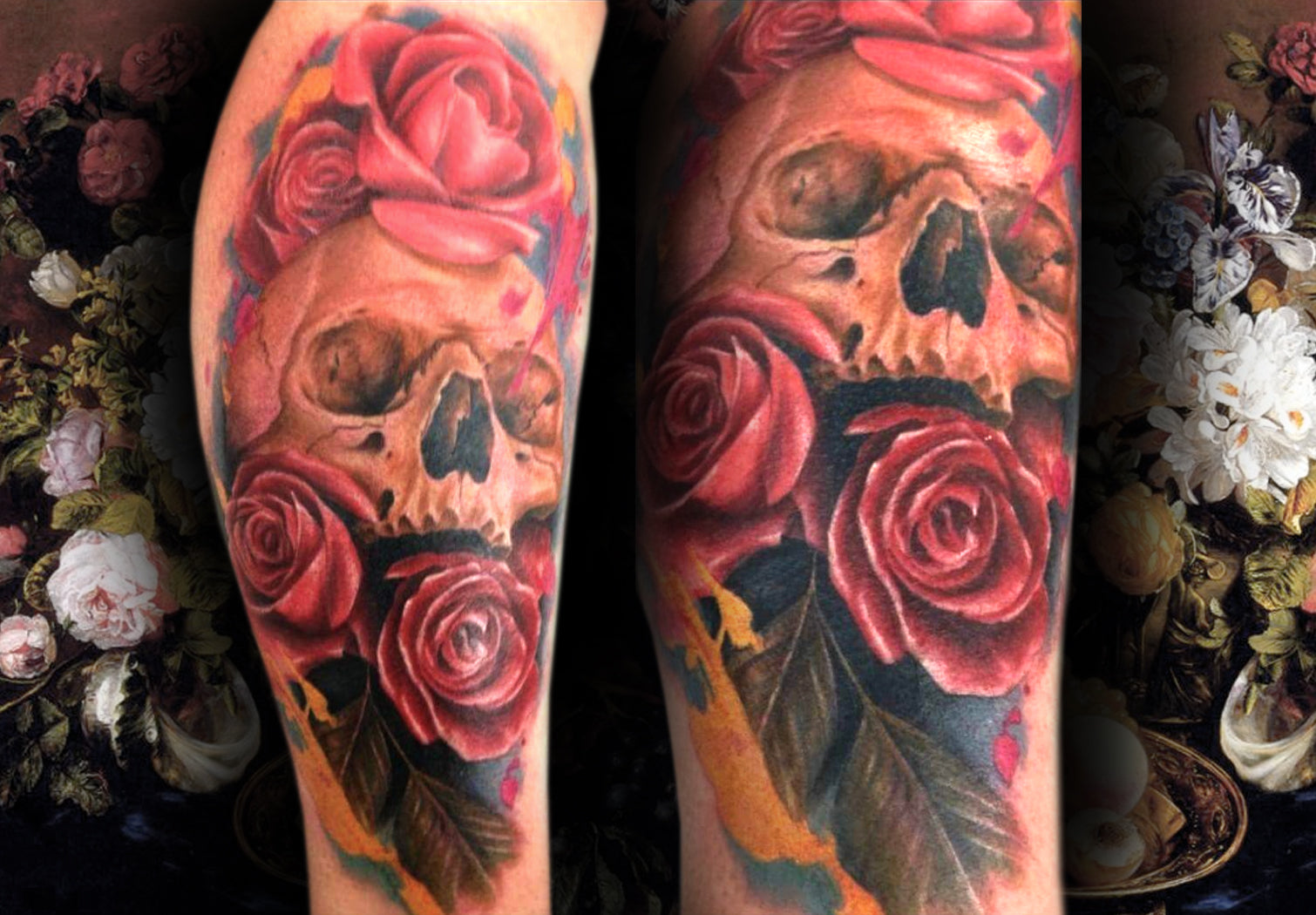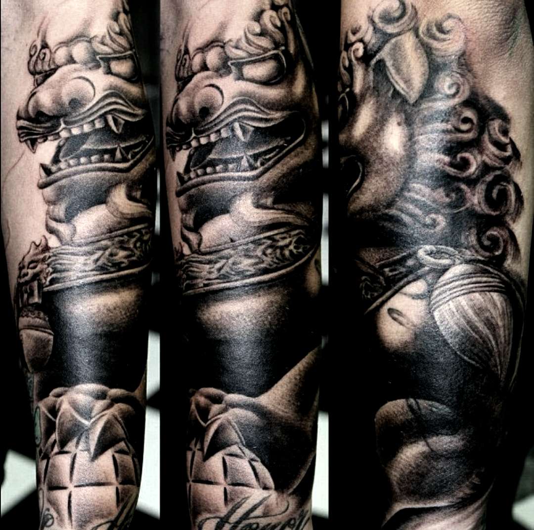 His favourite styles include black and grey, colour realism, Latino or Chicano designs, graffiti, and organic biomech.