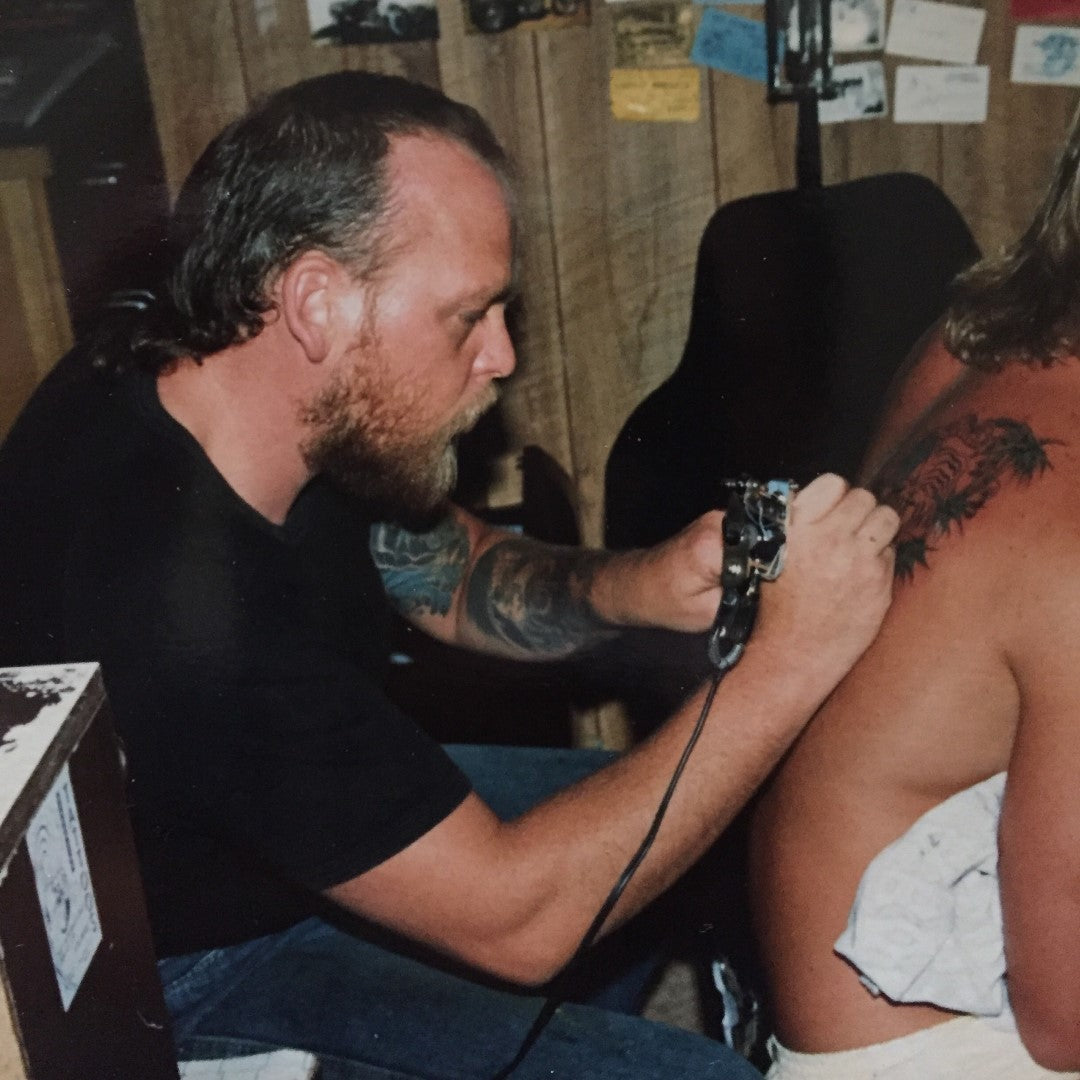 Paul was a self-taught tattooist and, once he started, he pursued the art with a passion. Eventually starting a studio in Griffith then moving the studio and his young family, wife Robyn, and three children, Rickelle, Ben and Luke, to the Gold Coast where he opened Borderline Tattoos in Kirra on the border of QLD and NSW in 1985.